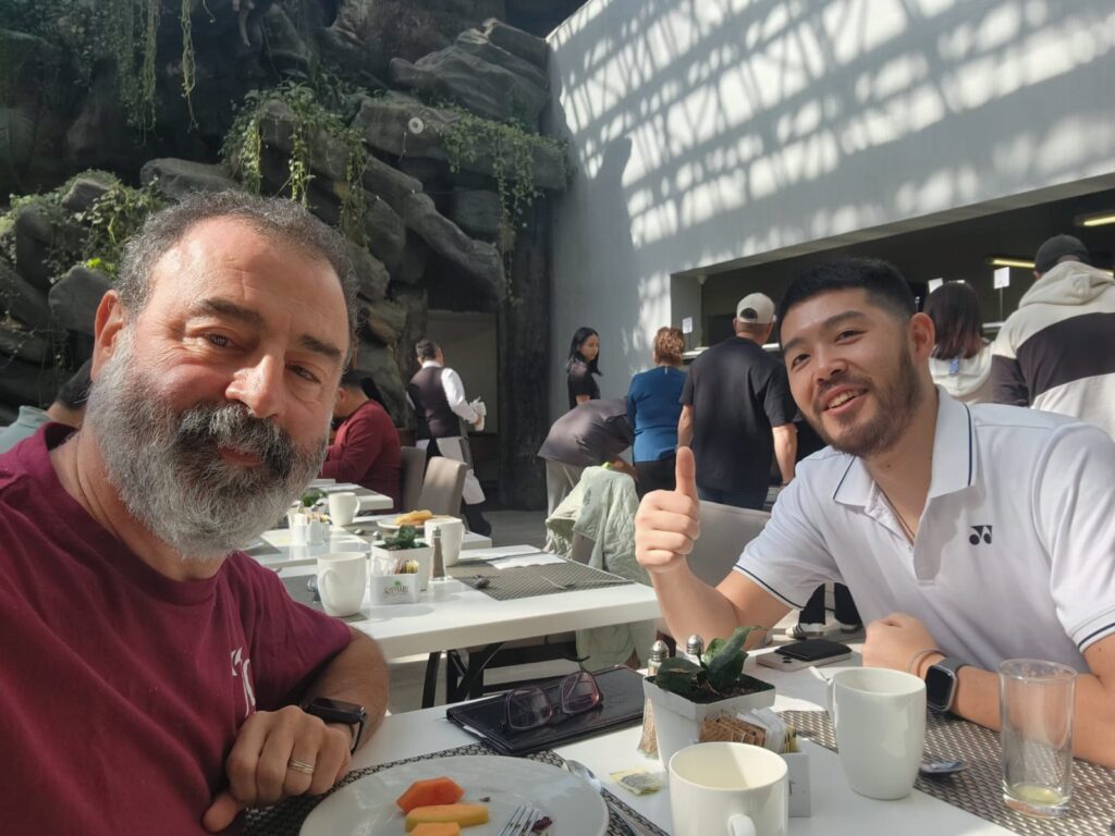 En la Ciudad de Guatemala, y en el contexto del Pan Am Male & Female Cup 2026 y el Taller para Administradores Nacionales de la BWF, Daniel Pallarola, vicepresidente de FEBARA, tuvo un desayuno de trabajo con Alex Ryu Wakai, responsable de ventas internacionales de Yonex Japón.
